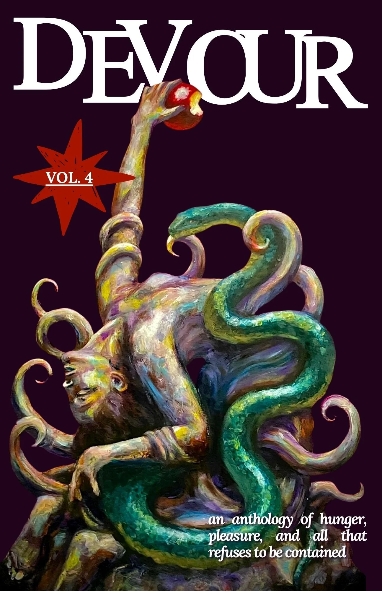 The fourth volume of Flesh and Parchment, Devour, turns toward hunger — the many ways we consume, absorb, inherit, and are ourselves consumed. To devour is not simply to eat. It is an act of desire, survival, excess, curiosity, intimacy. It is the moment when something crosses the threshold of the body and becomes part of it.
